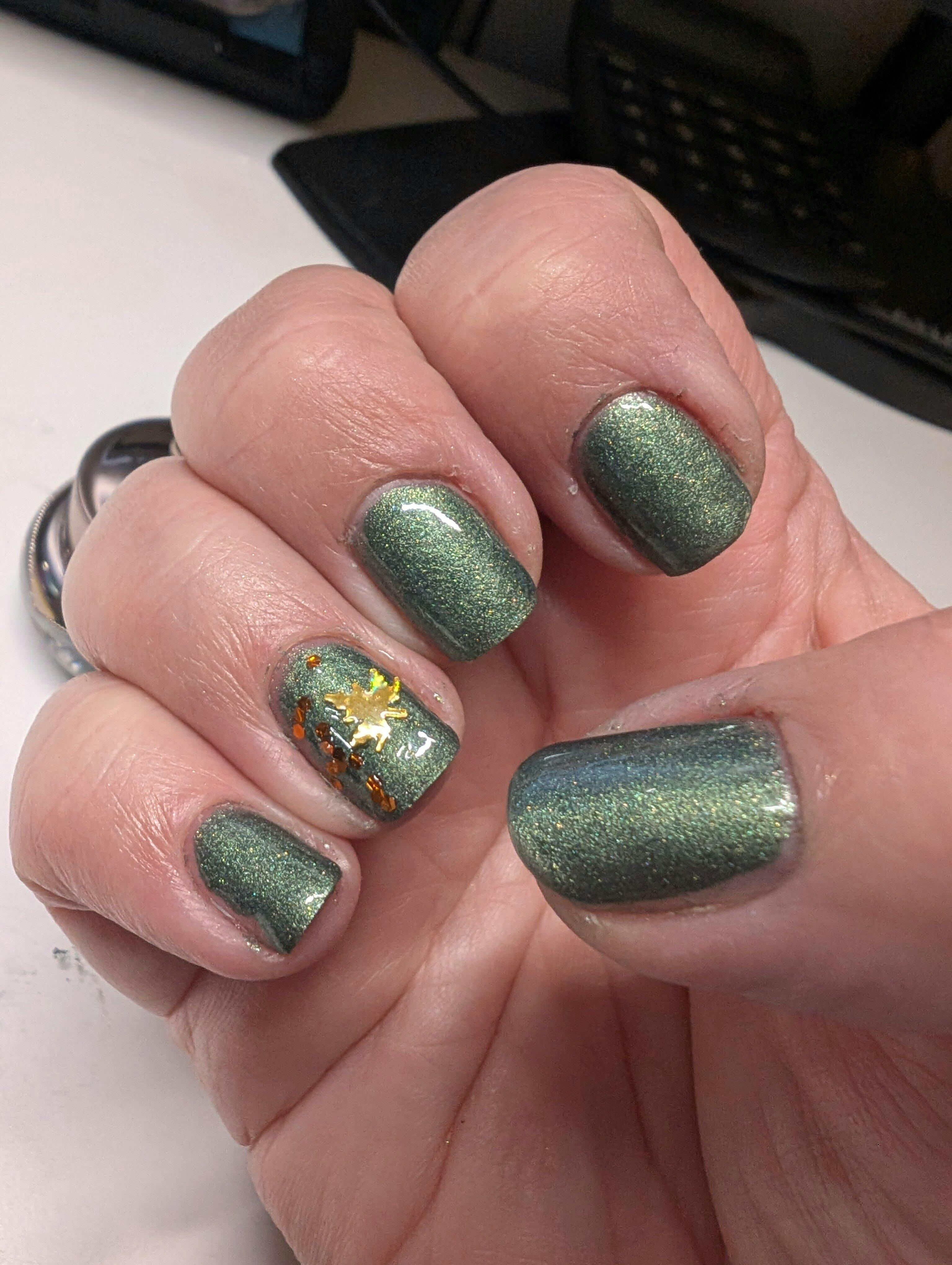 I don’t think I have even had this 3 weeks and I wore it this weekend to my Harp Festival in Canada.The way it sparkles under the light is so beautiful and from a distance or in shade it just looks like a burgundy polish. Thank you Hannah for such a gorgeous mix!