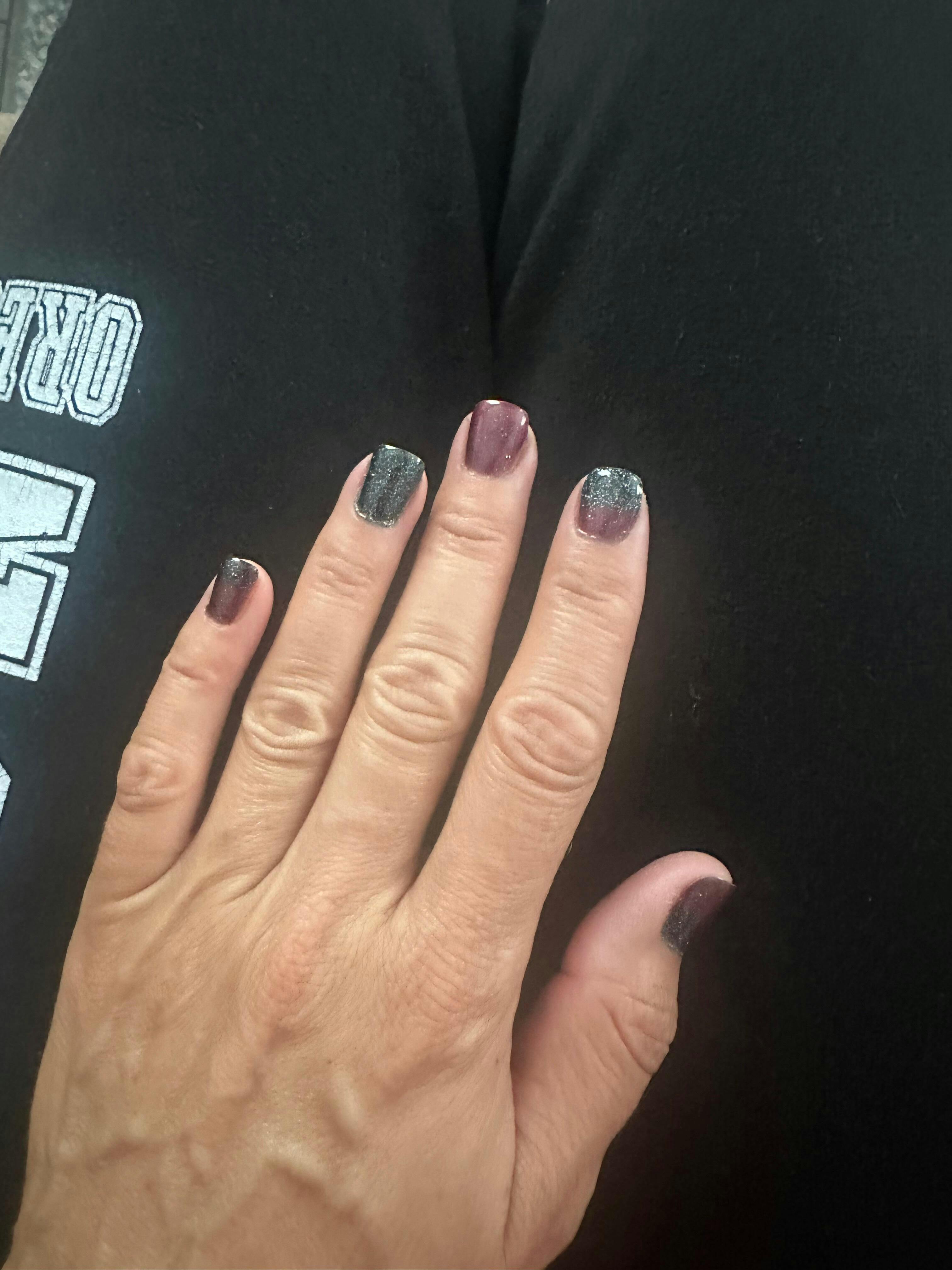 Love this color it shade shifts in different light. Takes on a purple hue depending on your lighting. This application the true color is on my ring finger. The other nails has finishing touches on top.