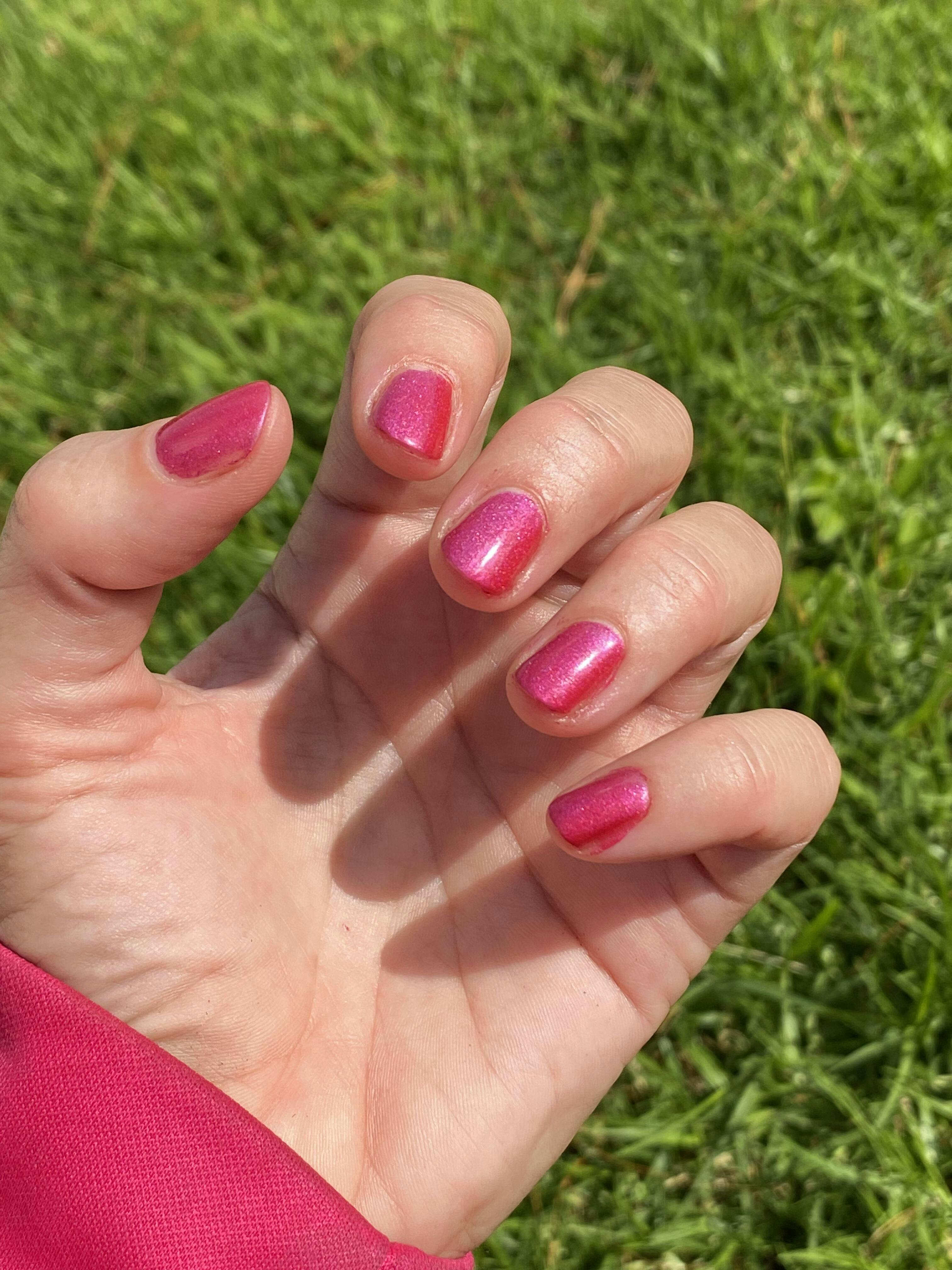Love this color it shade shifts in different light. Takes on a purple hue depending on your lighting. This application the true color is on my ring finger. The other nails has finishing touches on top.